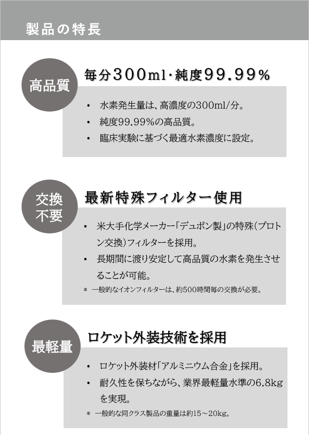 TOPすべての商品 水素吸入器 (300ml/分タイプ) 価格: ¥396,000 (本体 ¥360,000) [ポイント還元 3,960ポイント~] 販売期間: 数量: 台 在庫: × 在庫 × 返品についての詳細はこちら 水素吸入器(300ml/分タイプ) <注意事項> ◆キャンセル・返品不可(運送事故や初期不良等を除く) ◆ご注文のタイミングによっては、欠品になる場合がありますので、ご了承下さい。